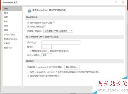 4、點擊“選項”命令選項后,這個時候會打開“PowerPoint選項”對話窗口。如圖所示;