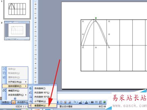 4、點擊左下角的繪制-旋轉或者翻轉-垂直翻轉命令,將其開口變成向上的曲線,然后接著調整該曲線的位置,使其第一個點的位置和上一個曲線的第三個位置重合。