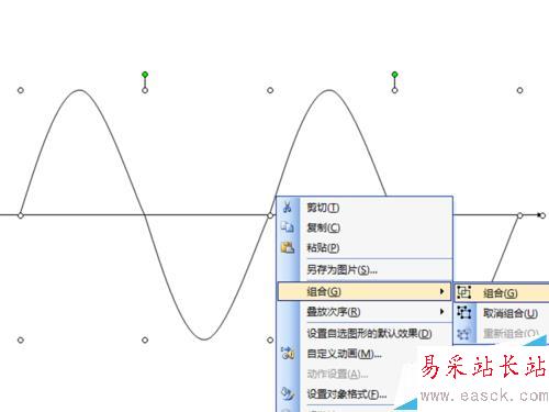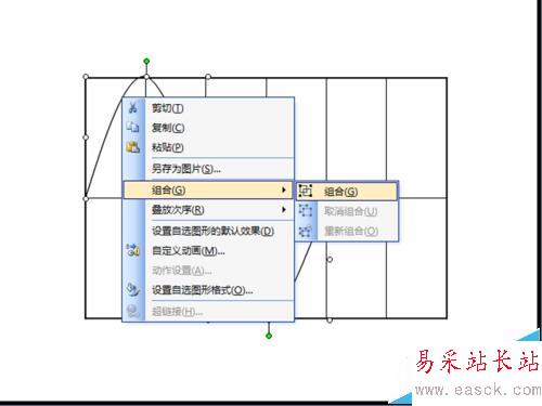8、選擇所有的圖形,右鍵單擊從下拉菜單中選擇組合命令,將所有的圖形組合成一個圖形,這樣方便操作。