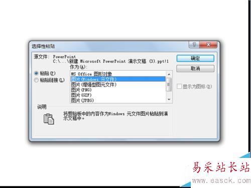 9、選擇這一個圖形后,按ctrl+x組合鍵進行剪切,然后執行編輯-選擇性粘貼,在彈出的對話框中選擇圖片(windows元文件)后,點擊確定。