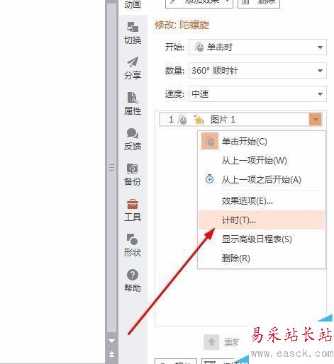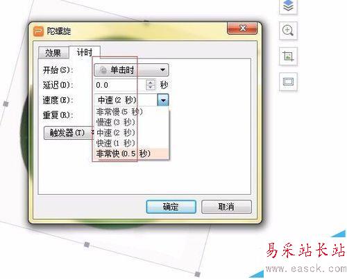 6、如圖所示,動畫效果的觸發器,也可以進行設置,是開始就播放還是需要點擊。