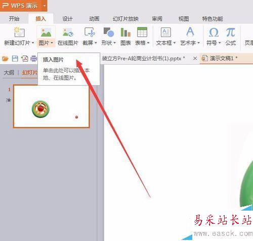 1、我們先把素材下載保存到電腦上,然后使用插入工具,插入到PPT文件中,也可以直接復制粘貼進來,如圖所示。
