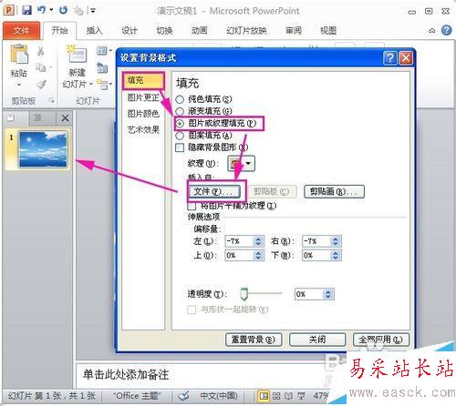 1、想要制作精美的PPT動態(tài)背景的話,你首先需要有一定的素材,包括一張圖片作為PPT背景,例如下面我用一個藍天大海為靜態(tài)的背景圖片做出一個動態(tài)效果,PPT如何設(shè)置背景圖片:右擊幻燈片→填充→圖片或紋理填充→插入自“文件”→選擇圖片插入: