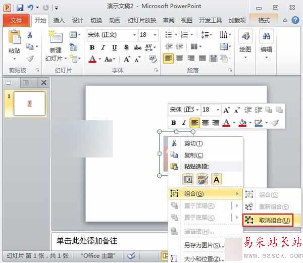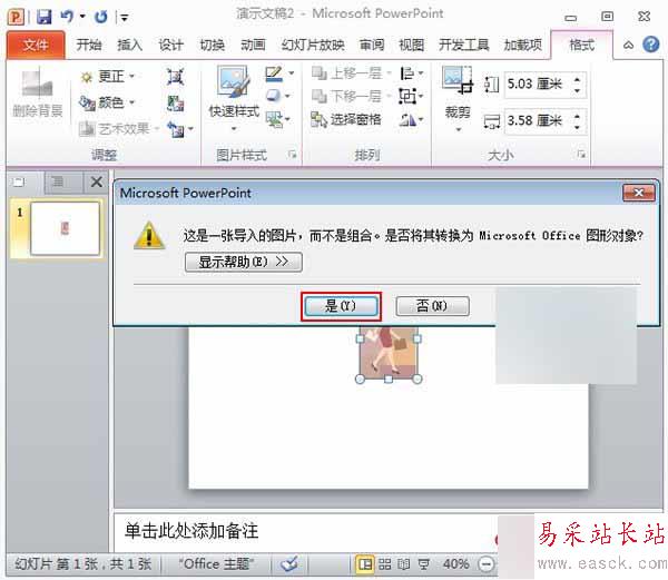 這是一張導入的圖片,是否取消組合,我們選擇是即可。