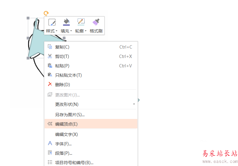 5、第五,完成之后,選擇任意一部分,右擊鼠標,選擇”編輯頂點“操作,在此項操作中,通過不斷的移動頂點的位置,使其完全覆蓋在原圖形上面。