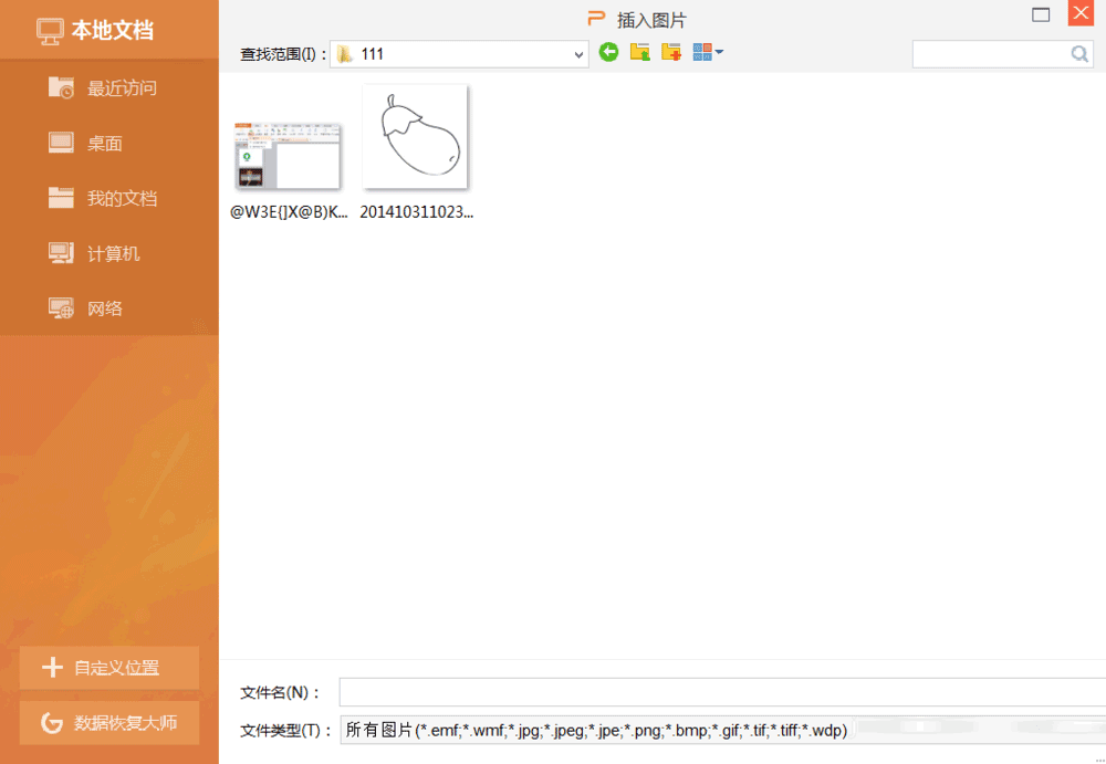 2、其次,在電腦中找到已經下載好的簡筆畫的文件夾,打開并插入進幻燈片之中。