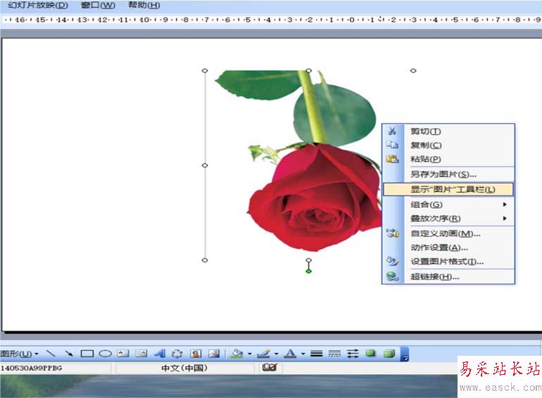 1、出圖片工具欄。具體做法:選中圖片,右擊鼠標,在彈出框里選擇”顯示圖片工具欄“,就可以調出圖片工具欄了。