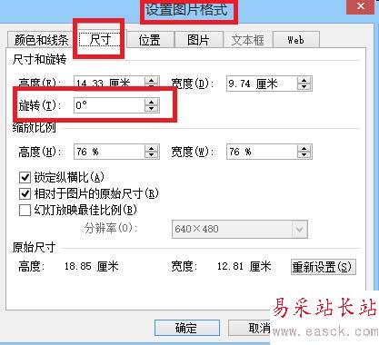 2、在設置圖片格式的選項卡中點擊“尺寸”,可以看到“旋轉”,這就是旋轉圖片的工具。