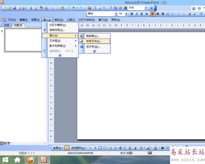 1、打開空白ppt,點擊上方工具欄中的插入——圖片——來自文件“,按照圖片保存的路徑,選擇并插入圖片。