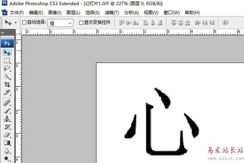 2、待文字保存為圖片之后,用Photoshop軟件打開圖片,然后通過魔術(shù)棒和復(fù)制圖層操作,將文字拆解為偏旁部首,即可完成文字拆解,如圖