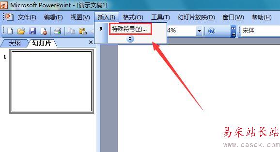 3、點擊插入選項,在其子級菜單那里找到特殊符號選項,如圖所示: