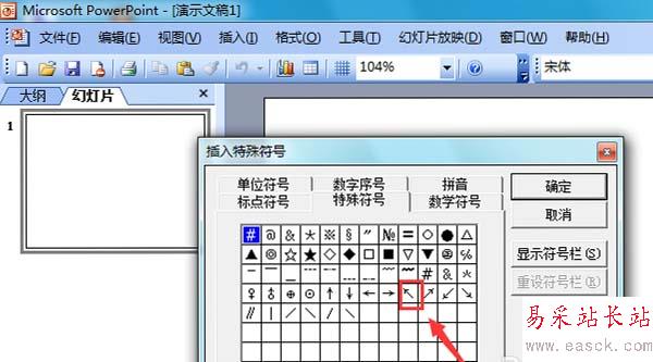 PowerPoint 2003是一款多媒體演示文稿制作軟件,我們在使用該軟件制作文本時常常需要輸入一些特殊的符號和形狀,此時使用鍵盤輸入就不太方便了,下面我們就來看看使用該軟件如何輸入左上箭頭的吧。