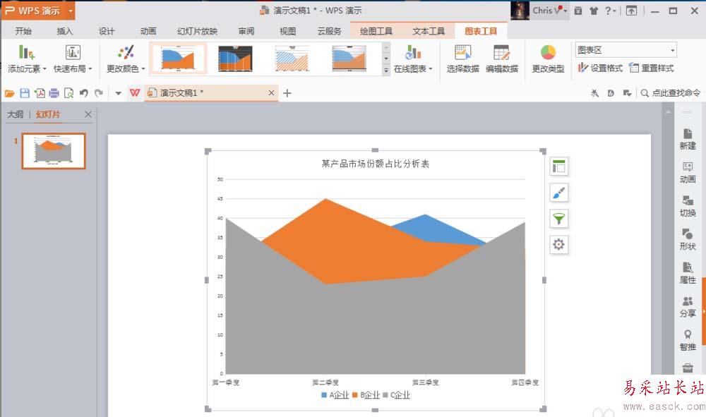 ppt的廣泛使用,使我們工作、生活更加便利的同時(shí),我們也要積極融入,去學(xué)習(xí)ppt的各項(xiàng)技巧,而圖表的使用也是我們常用到的,這里跟大家分享下如何插入編輯面積圖圖表!