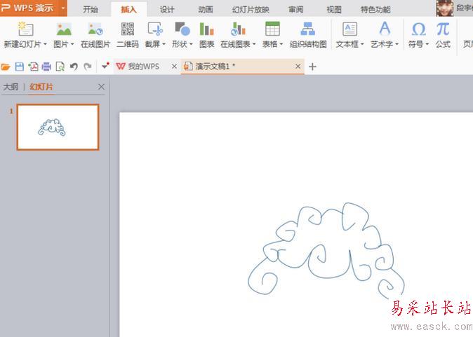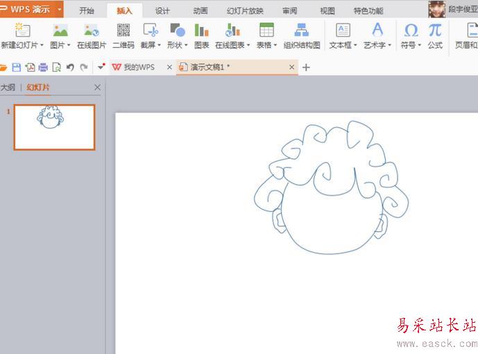 2、選擇S形狀,繪制人物的頭發,輪廓的顏色設置為藍色,如圖所示