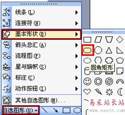2、點擊自選圖形——基本形狀,在基本形狀里,選擇喜歡的圖形,我選擇了矩形。