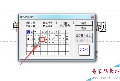 5、在該對話框內找到數學符號選項,并在其內找到因為符號選項,如圖所示: