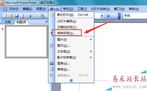 PowerPoint 2003是一款多媒體演示文稿制作軟件,使用該軟件我們可以輕松制作出制作我們的演示文稿,在文稿制作時有時我們輸要輸入一些特殊的符號,此時使用鍵盤就不方便了,下面我們就來使用該軟件看看如何輸入因為符號。