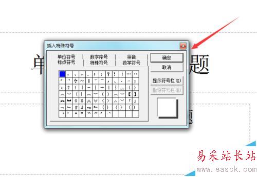 4、點擊特殊符號選項,彈出插入特殊符號選項,如圖所示:
