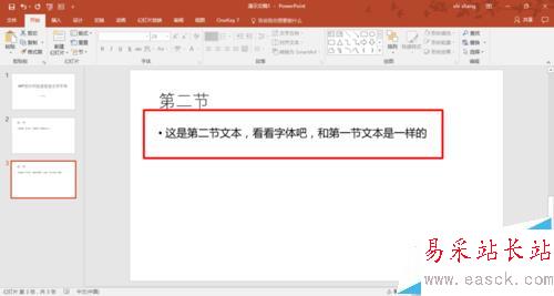 6、可以看到只要是這個(gè)PPT里面的宋體,都已經(jīng)替換成為了微軟雅黑字體