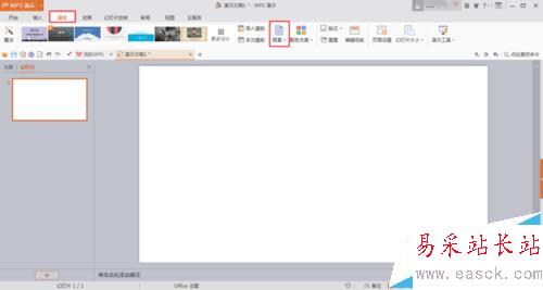 4、接下來打開要插入背景的PPT課件,點擊上方菜單欄里的【設(shè)計】按鈕,在下方選項里找到【背景】功能選項,如下圖所示。