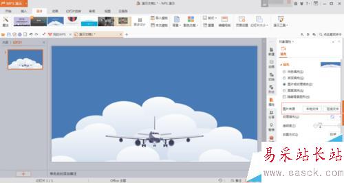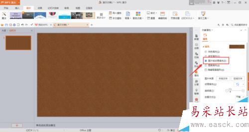 5、點擊【背景】功能選項,此時在右側(cè)彈出背景設(shè)置選項,選擇【圖片或紋理填充】,如下圖所示。