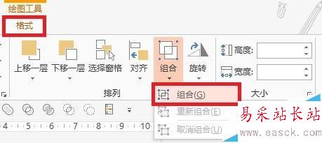 7、將閃電兩邊的部分選擇起來,點擊格式,組合,組合。