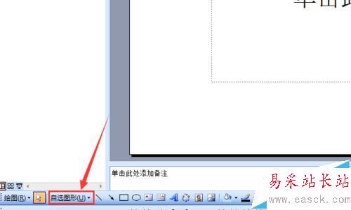 3、在繪圖區域里找到自選圖形選項,如圖所示: