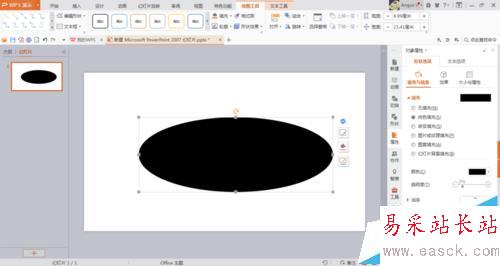 3、插入圓形后,把他填充為你需要的顏色,然后橫向拉長。