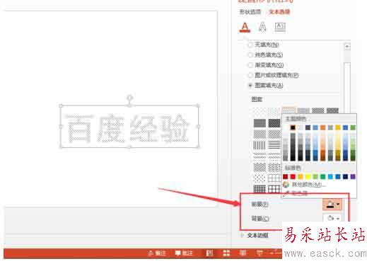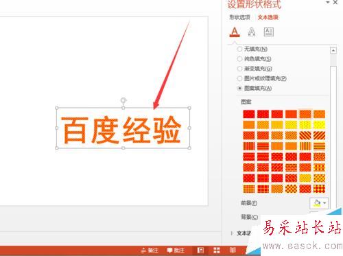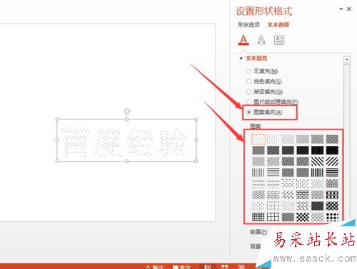 4、從文字填充列表中選擇“圖案填充”,然后從預設的列表中選擇一種填充樣式。