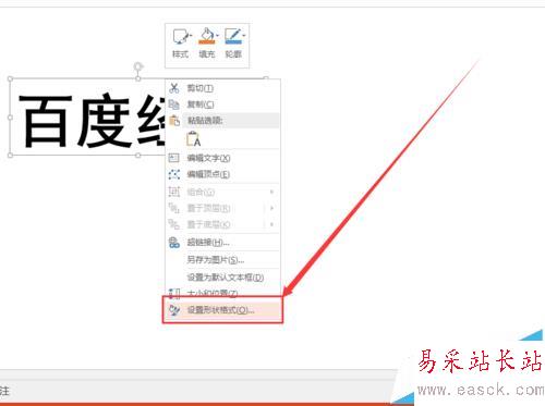 2、在文本框上點擊鼠標右鍵,然后點擊“設置形狀格式”。