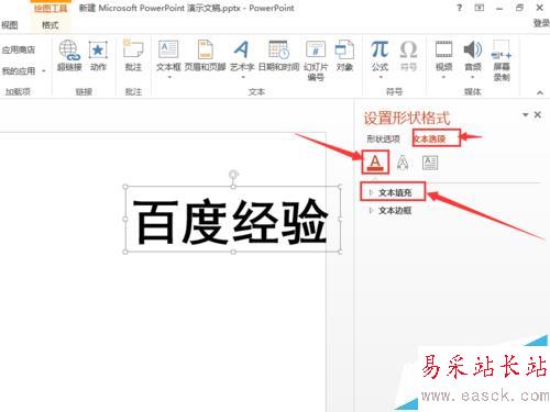 3、打開形狀格式對話框之后,點擊“文本選項”>“文本填充”。