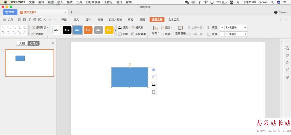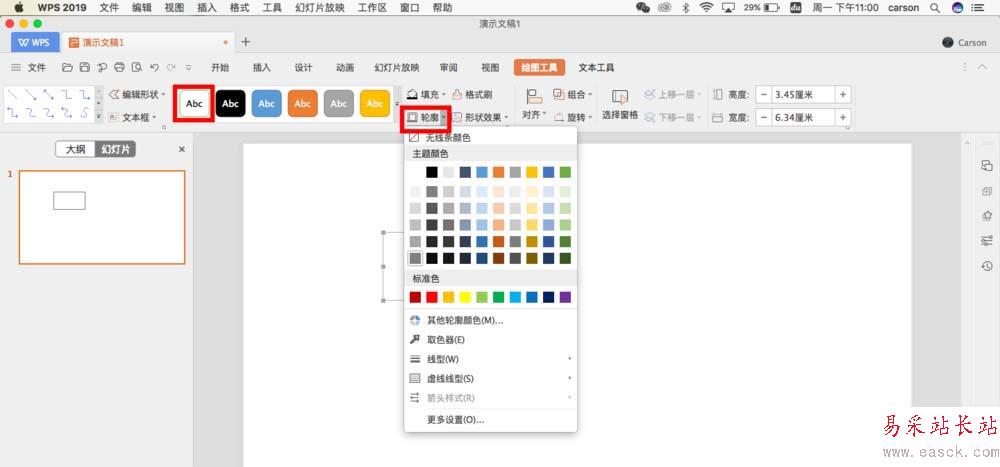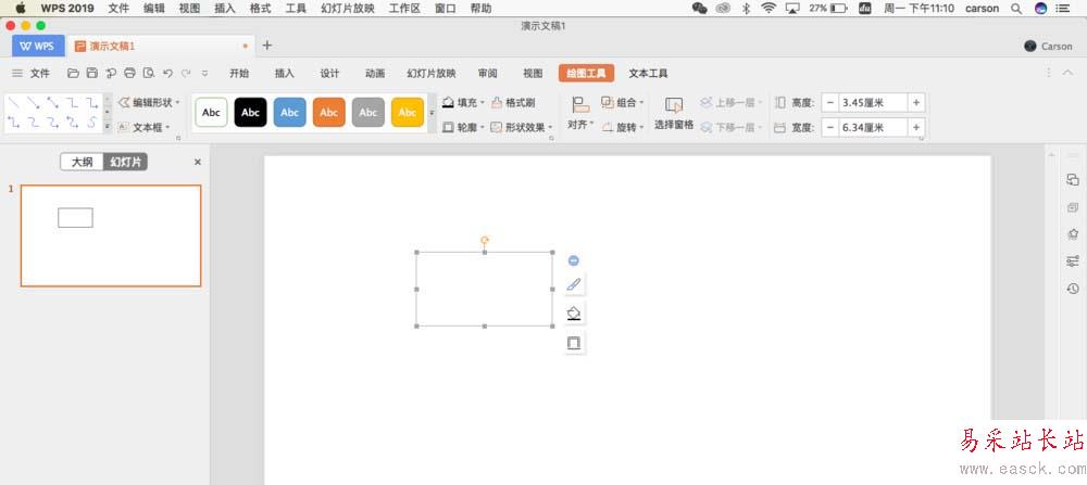 2、選中繪制的矩形圖,設置矩形形狀填充的主題色為白色,形狀輪廓顏色為灰色