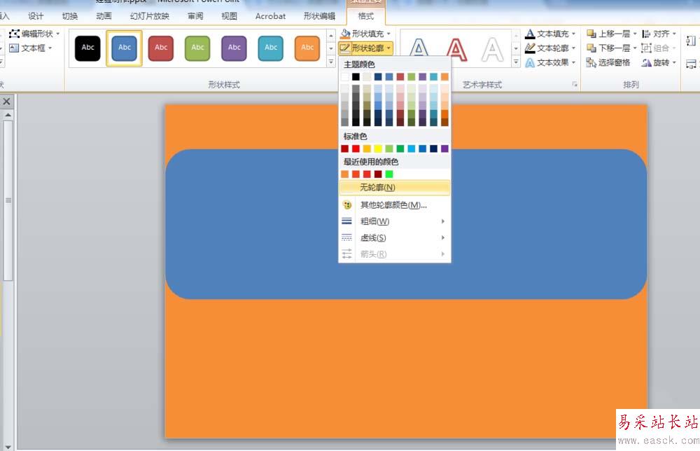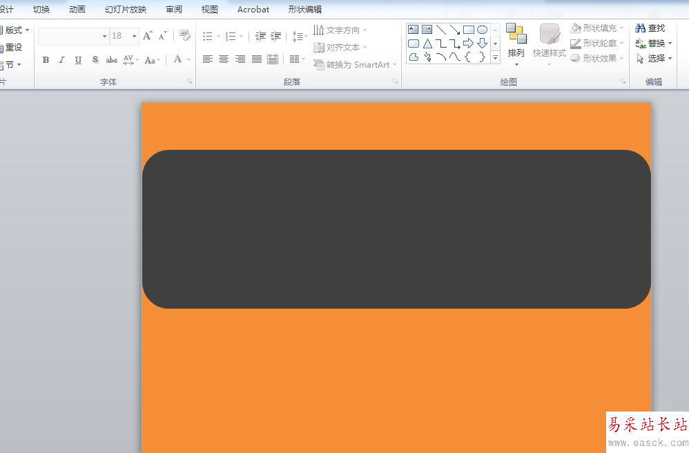 3、插入一個(gè)圓角矩形,修改顏色,無輪廓顏色,填充顏色維黑色;