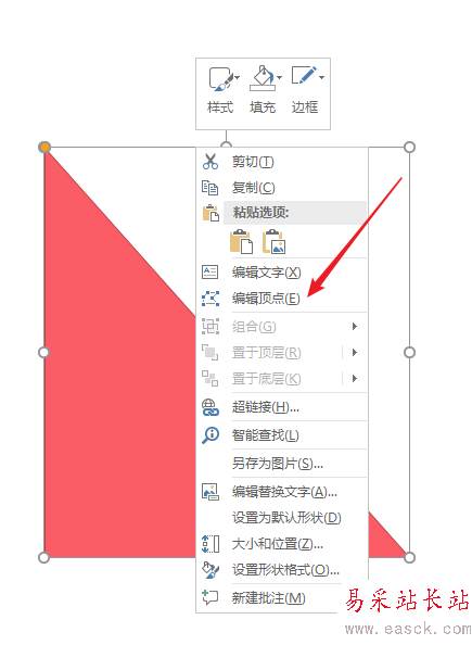 5、要得到鈍角三角形,需要進行如下操作。選中三角形,點擊鼠標右鍵,點擊【編輯頂點】。