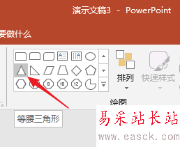 2、點擊【開始】—【繪圖】中的【等腰三角形】。