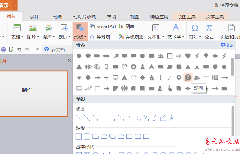 2、在工具欄中找到插入選項,插入圖形選擇問號標(biāo)志。