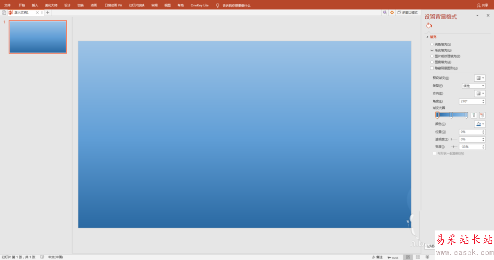 1、新建PPT文件,刪除幻燈片中的文本框不用,設置背景藍色漸變顏色。