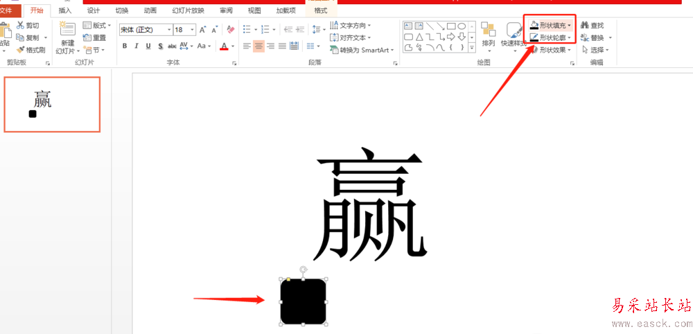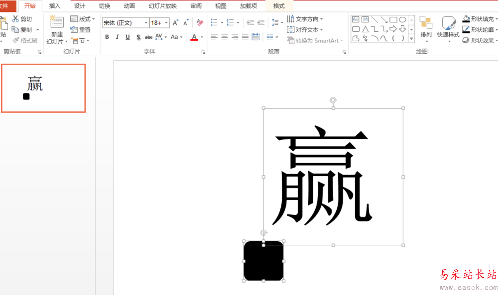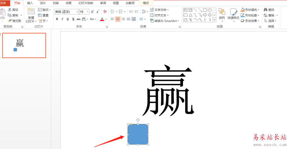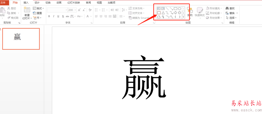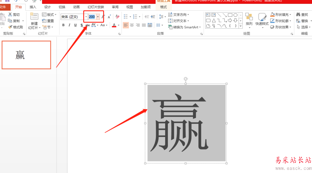 2、在新插入的文本框中,輸入想要拆分的文字,例如:贏。為了方便拆分刪除,可需要先調整字體的大小,例如:200。