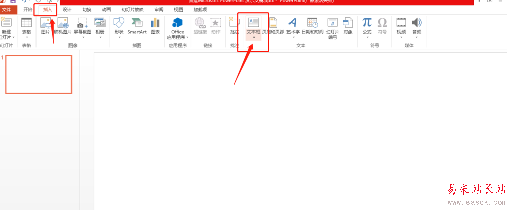 1、打開PPT,先清空原有的文本框,然后選擇【插入】,找到【文本框】,選擇【橫排文本框】;