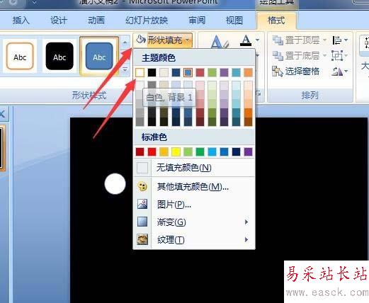 3、繼續(xù)點(diǎn)擊形狀填充,選擇白色填充圓形。再點(diǎn)擊形狀效果,點(diǎn)擊柔化邊緣,10磅。