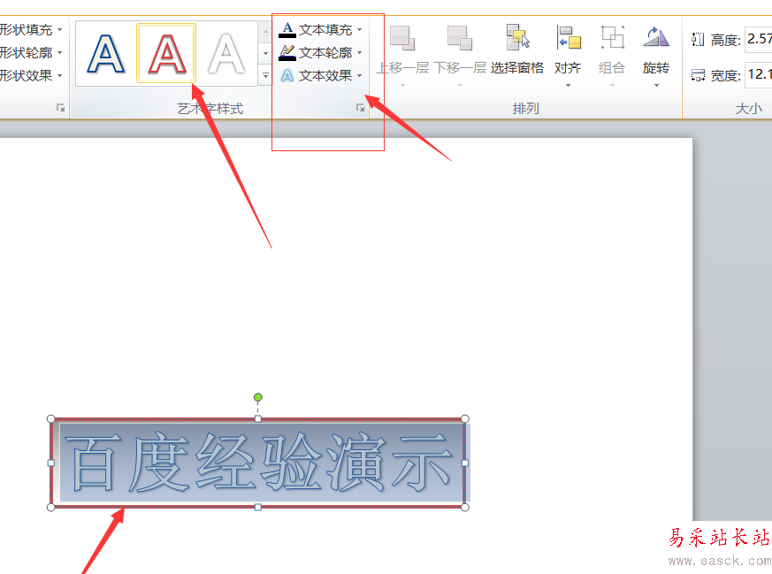 7、藝術(shù)字的調(diào)整和形狀的調(diào)整基本類似,所以小編就不再贅述,大家可以多多練習(xí)操作即可,如下圖所示。