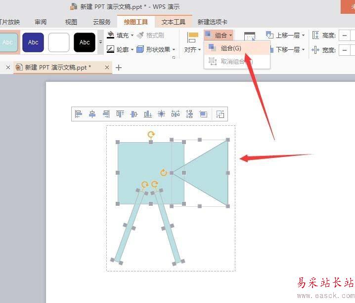 6、把這幾個形狀編輯拼接好之后,全選所有圖形然后點擊組合在一起