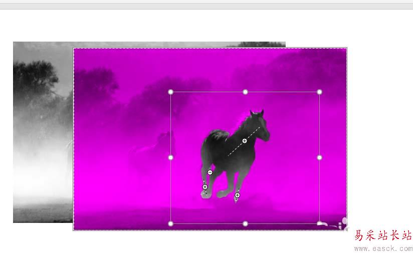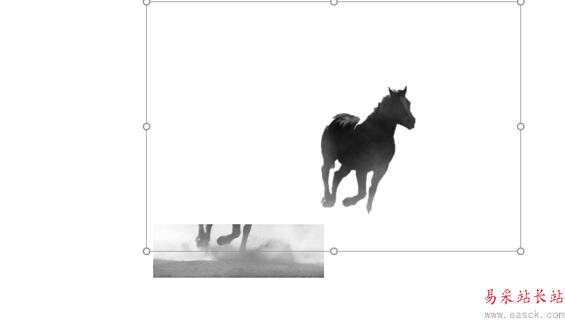9、然后移動摳圖后的馬,重合腳上的內容,并且將圖片置于底層