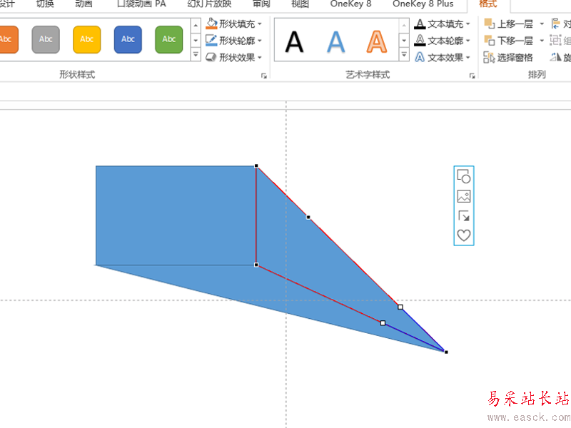 3、接著選擇定點進行調整,直至形成一個斜三角形。