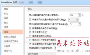 在“禁用幻燈片放映硬件圖形加速”復選框中打勾,如下圖: