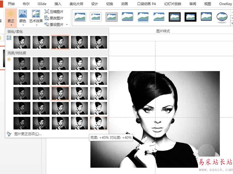 2、選擇圖片,執行格式-更正命令,選擇一個合適的亮度對比度。