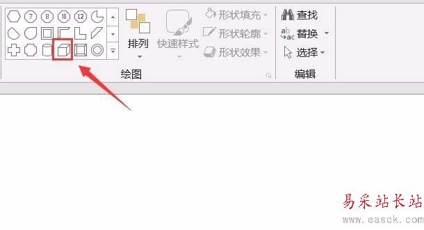 2、打開PPT之后在開始里找到繪圖選項,然后在繪圖里選擇需要的圖形,如圖所示: