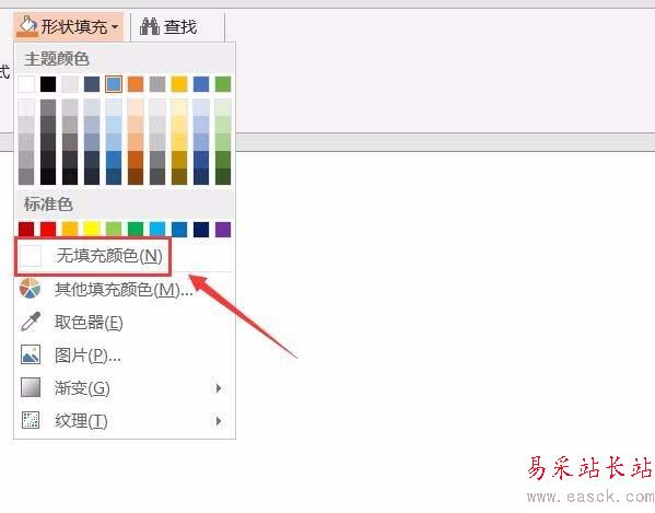 4、繪制好圖形以后在上面找到格式選項,點擊該選項在其內找到形狀填充選項,在該選項內找到無填充顏色選項,如圖所示: