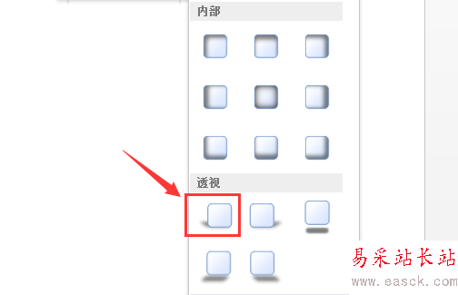 7、點擊陰影選項在其子級菜單里找到透視里的一種效果,如圖所示: