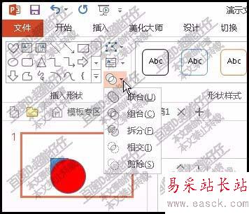 6、再點(diǎn)開合并形狀這個按鈕。如下圖所示。